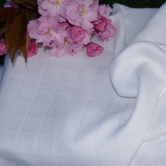 Bamboo Muslin Fabric Natural, by the Yard, Checked