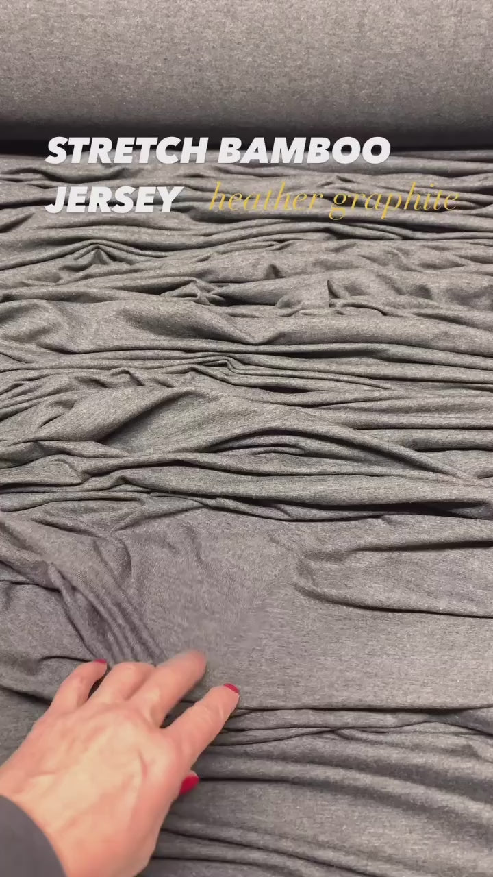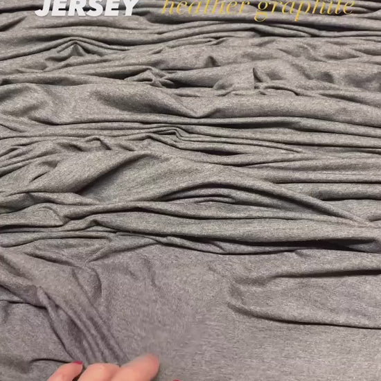 Known also as Charcoal Mix, this Heather Graphite bamboo cotton stretch jersey fabric is an ultra-soft knit that features a four way stretch and a smooth, luxurious touch.